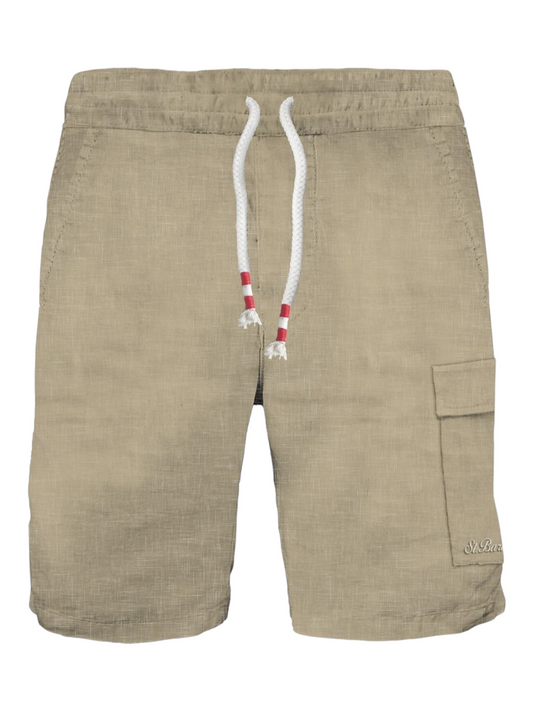 Bermuda lino uomo MC2 Saint Barth tinta unita con lacci e tascone