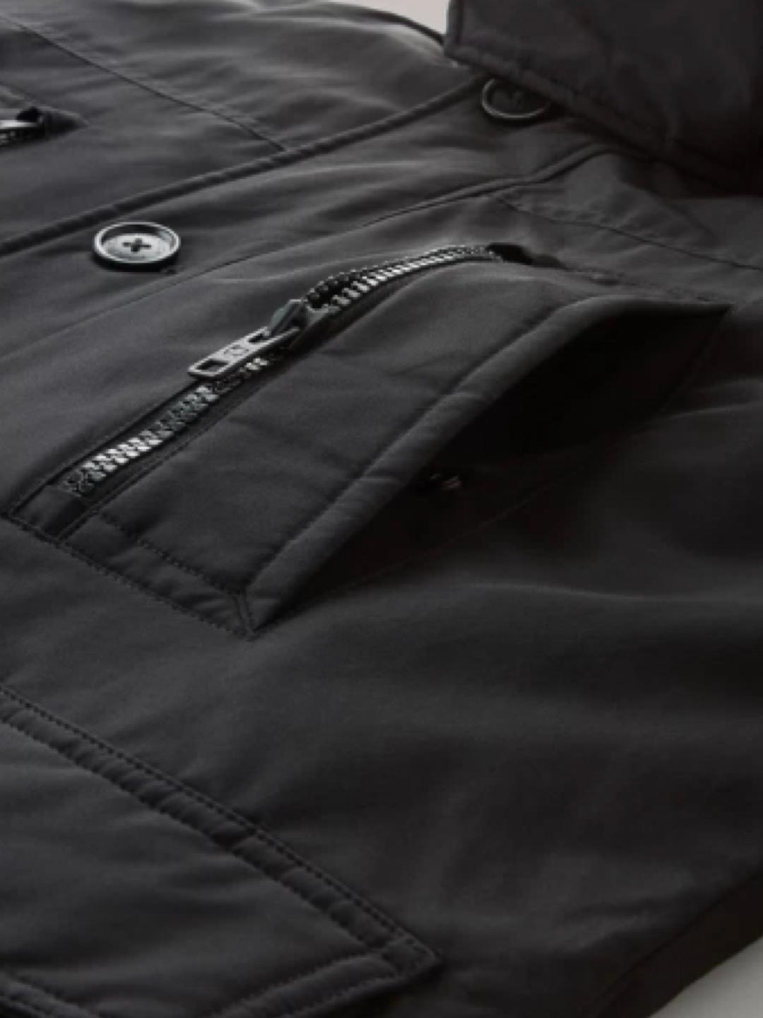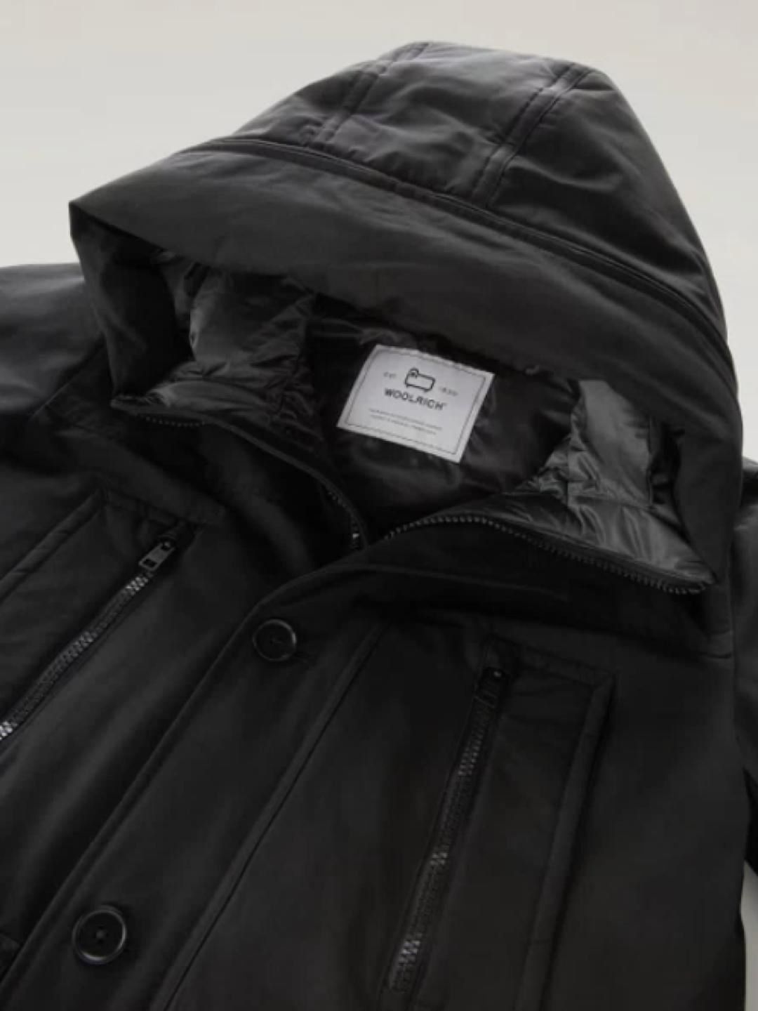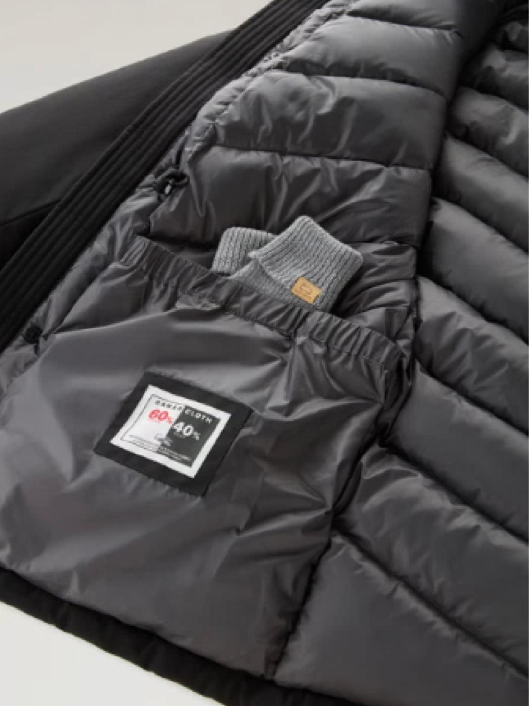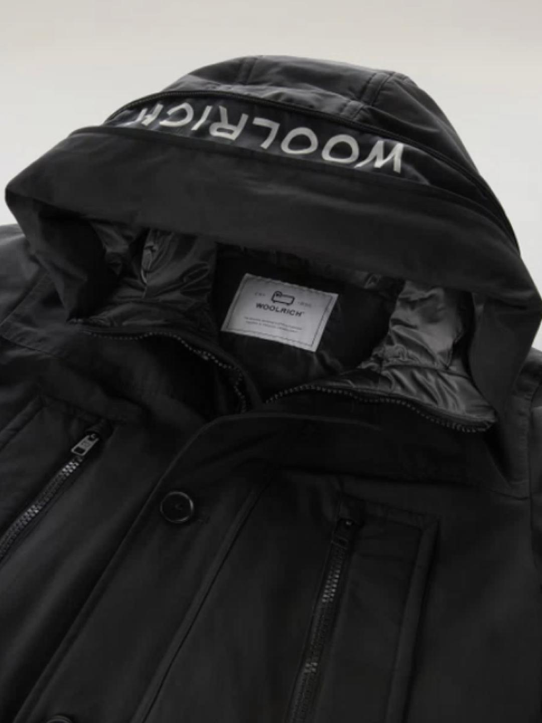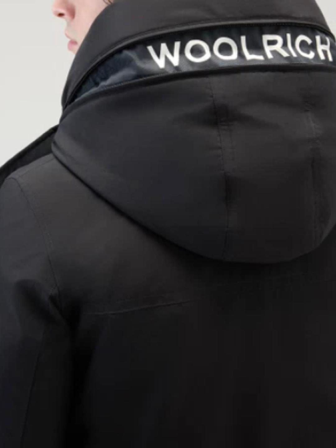 Cappuccio con zip per mostrare scritta Woolrich o nasconderla