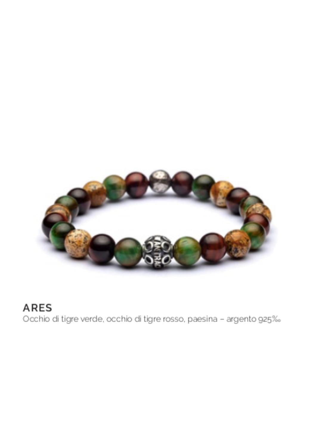 Bracciale Antracite collezione Big - Ares (Occhio di tigre verde, occhio di tigre rosso, paesina - argento 925%) (Pietra 8mm, mis. Medium 20cm)