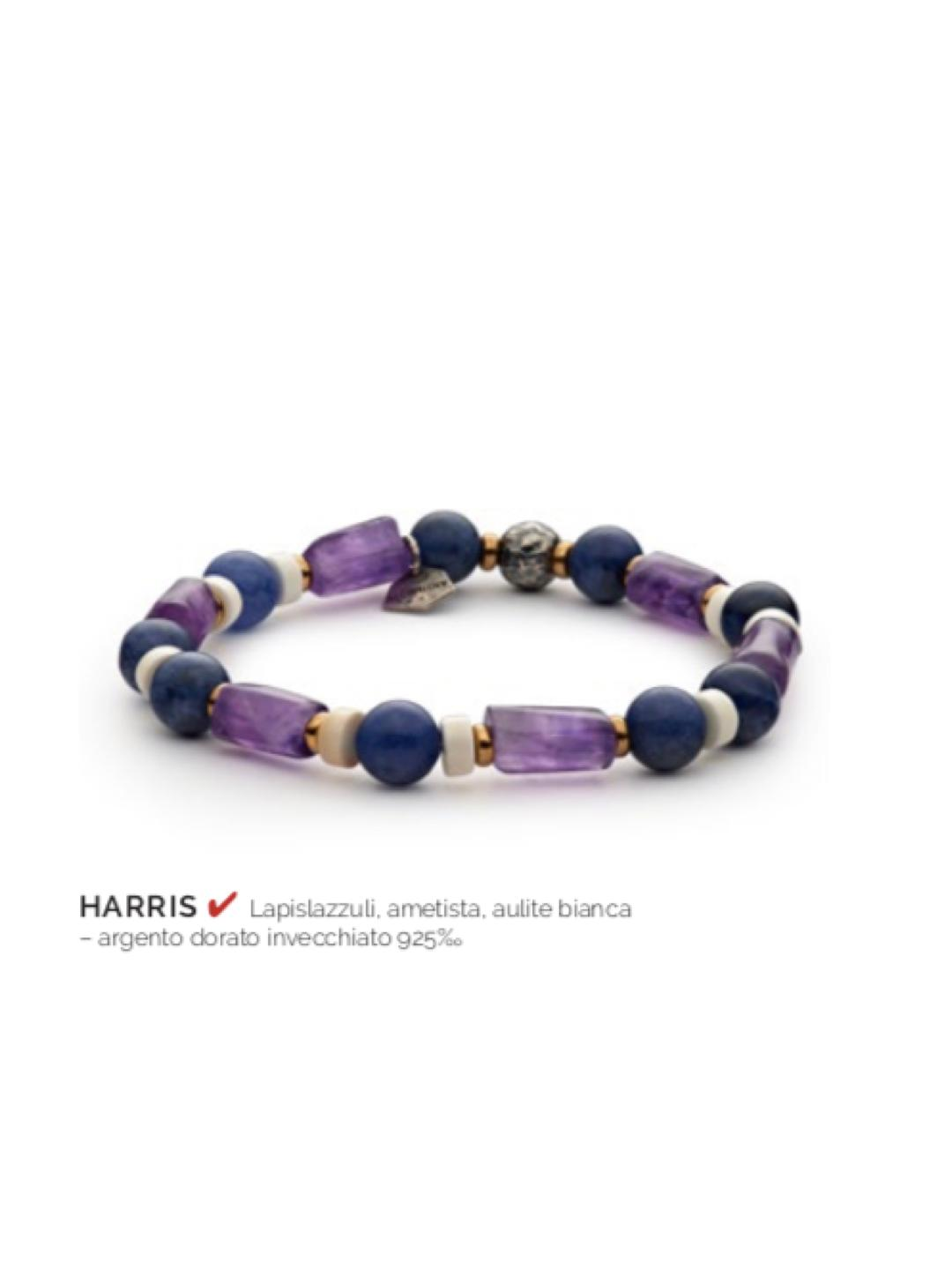 Bracciale Antracite collezione Prisma - Harris (Lapislazzuli, ametista, aulite bianca - argento dorato invecchiato 925%) (Pietra 8mm, mis. Medium 20cm)