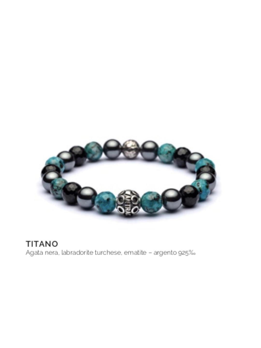 Bracciale Antracite collezione Big - Titano (Agata nera, labradorite turchese, ematite - argento 925%) (Pietra 8mm, mis. Medium 20cm)