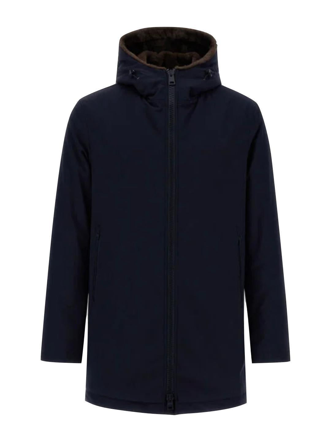 Parka in poliestere taslan con natural stretch in trama, con interni in materiale sintetico.