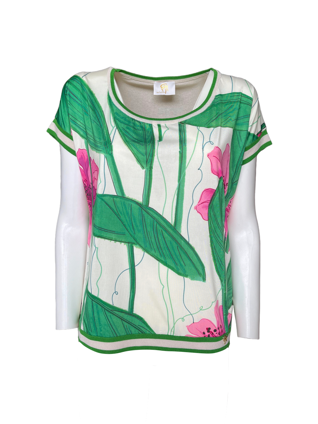 Maglia donna Gai Mattiolo con stampa floreale e bordi a contrasto