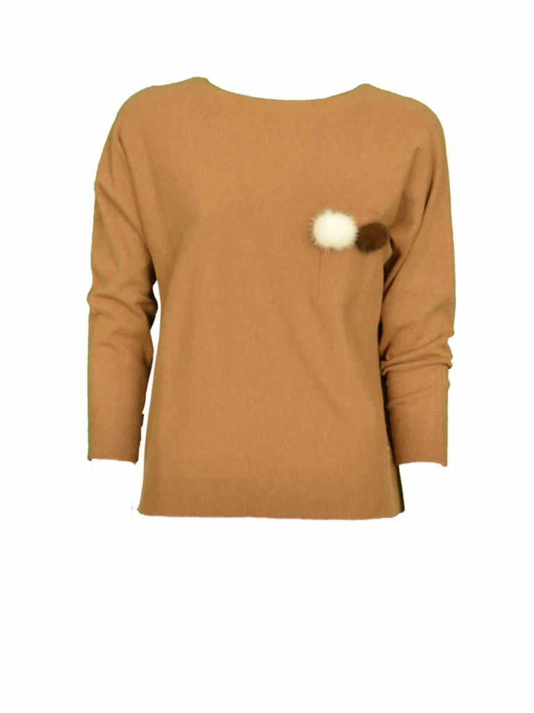Pullover donna Gai Mattiolo in cashmere ecologico con pon pon