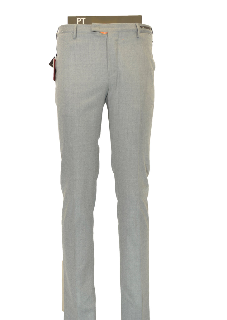 Pantaloni PT Torino in flanella in due varianti colore: blu medio e grigio chiaro. Vestibilità skinny.